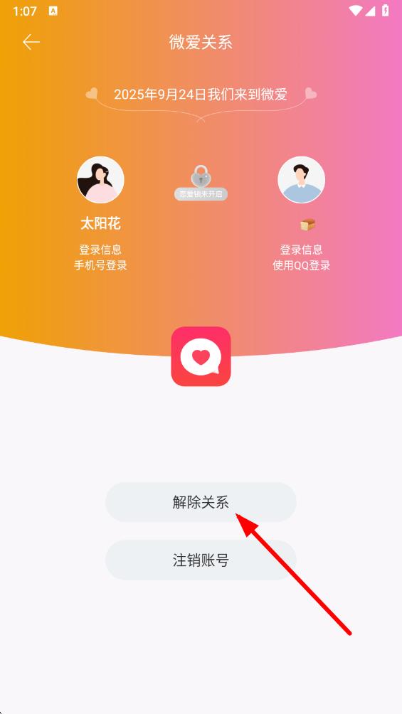 4、在微愛關(guān)系管理頁面,點(diǎn)擊解除關(guān)系按鈕,按照提示完成解除操作。