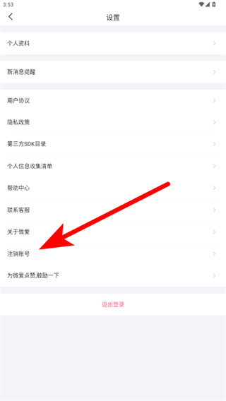 2、在設(shè)置頁面,點(diǎn)擊注銷賬號選項(xiàng)。