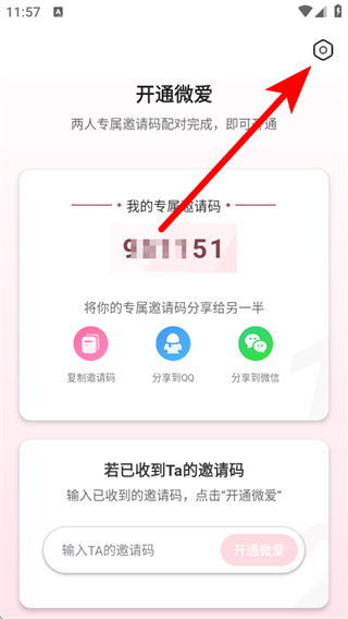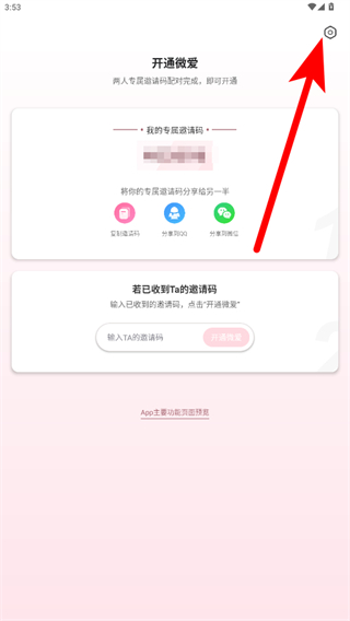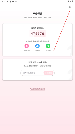 1、打開微愛應(yīng)用,點(diǎn)擊右上角設(shè)置圖標(biāo)進(jìn)入設(shè)置頁面。