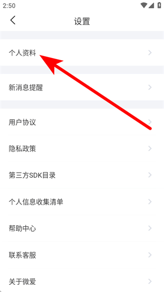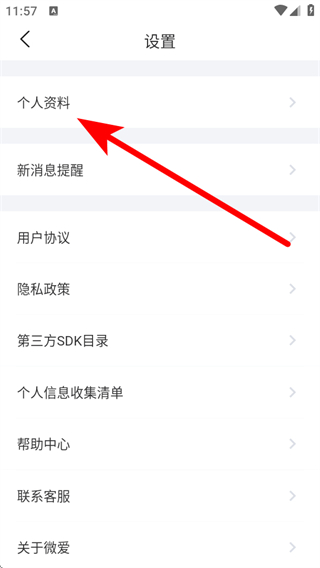 2、在設(shè)置頁面中點(diǎn)擊個(gè)人資料選項(xiàng),進(jìn)入個(gè)人資料頁面。