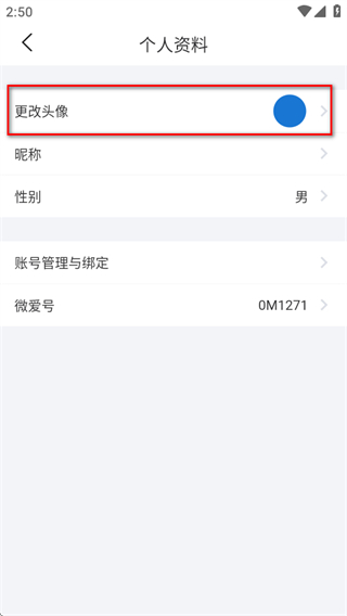 3、進(jìn)入個(gè)人資料頁面后,點(diǎn)擊更改頭像選項(xiàng)。