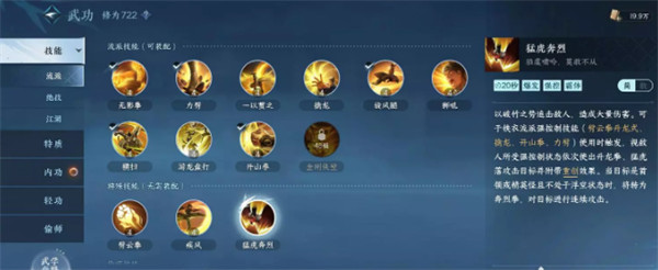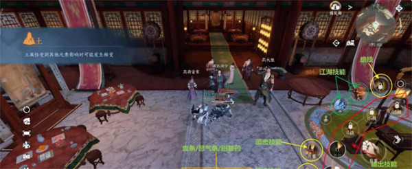 玩家除了可以攜帶5個職業(yè)技能外,還可以在右上方攜帶一個絕技和江湖技能。這里大家先簡單做個了解,后面我會單獨(dú)出一期攻略詳細(xì)展開說。右下方有兩個技能是默認(rèn)帶的,一個是追擊技能,一個解控技能,達(dá)到特定條件時才會亮起。如被控后會亮起解控按鈕等。