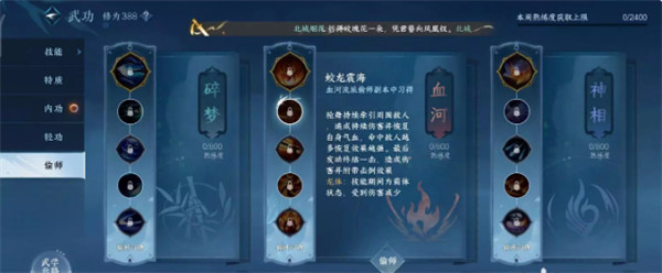 玩家除了本職業(yè)的技能外,還可以通過偷師的玩法來偷學(xué)其他職業(yè)的技能,比如我玩的鐵衣可以通過偷師來學(xué)習(xí)奶媽的【清風(fēng)】給自己回血,血河的【丹心飲意】用來打本的時候給自身回復(fù)血量,又或者偷學(xué)血河的【蛟龍鎮(zhèn)海】用來打PVP時進(jìn)入人堆控制敵人等。但是偷師技能會占用一個職業(yè)技能的位置,玩家如果帶偷師技能,則只可以帶本職業(yè)的4個技能。