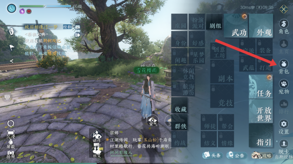 2、在展開的功能菜單中,找到并點(diǎn)擊背包選項。