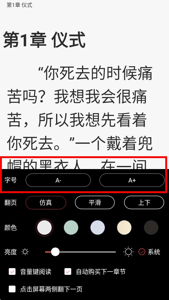 4、在設(shè)置界面的字號一欄,點擊A-可減小字體,點擊A+可增大字體,調(diào)整到合適的字體大小即可。