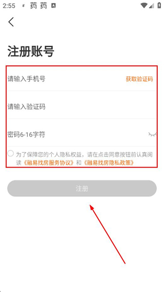4、輸入手機號和驗證碼,設(shè)置6密碼,勾選協(xié)議后點擊注冊。