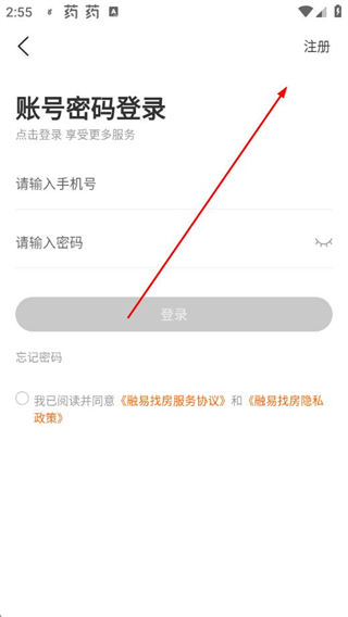 3、在賬號密碼登錄頁面點擊注冊,進入注冊賬號頁面。