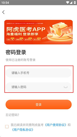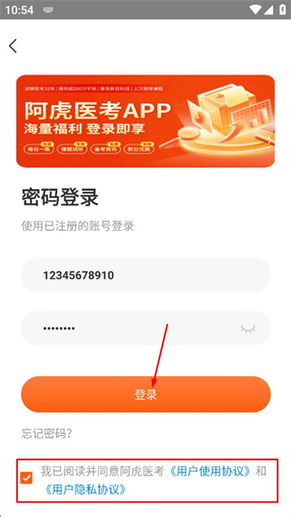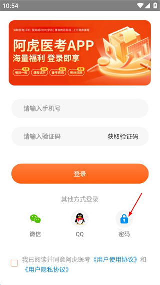 4、勾選同意協(xié)議,完成阿虎醫(yī)考APP的登錄。