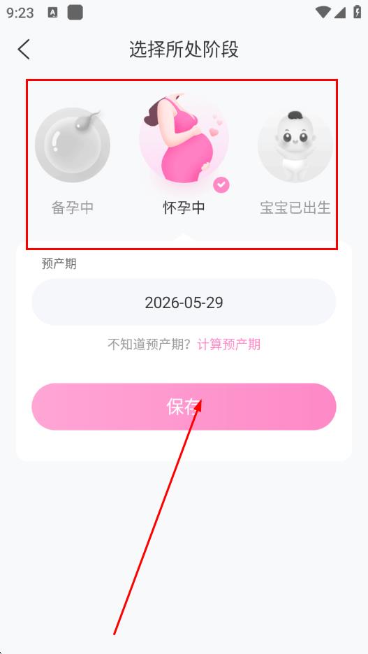 4、在選擇所處階段頁面,選擇二胎對應的狀態(tài),點擊保存按鈕,完成二胎信息添加。