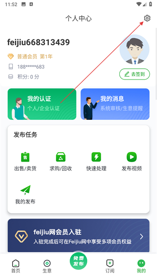 2、進(jìn)入個人中心頁面后點(diǎn)擊右上角設(shè)置圖標(biāo)。