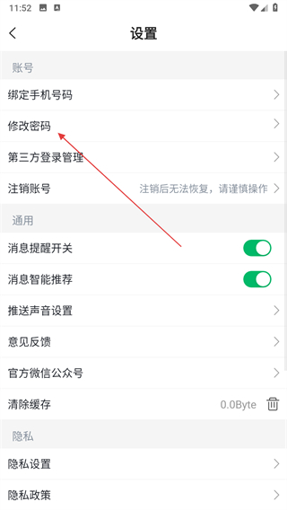 3、點(diǎn)擊修改密碼選項(xiàng),進(jìn)入修改密碼頁面。