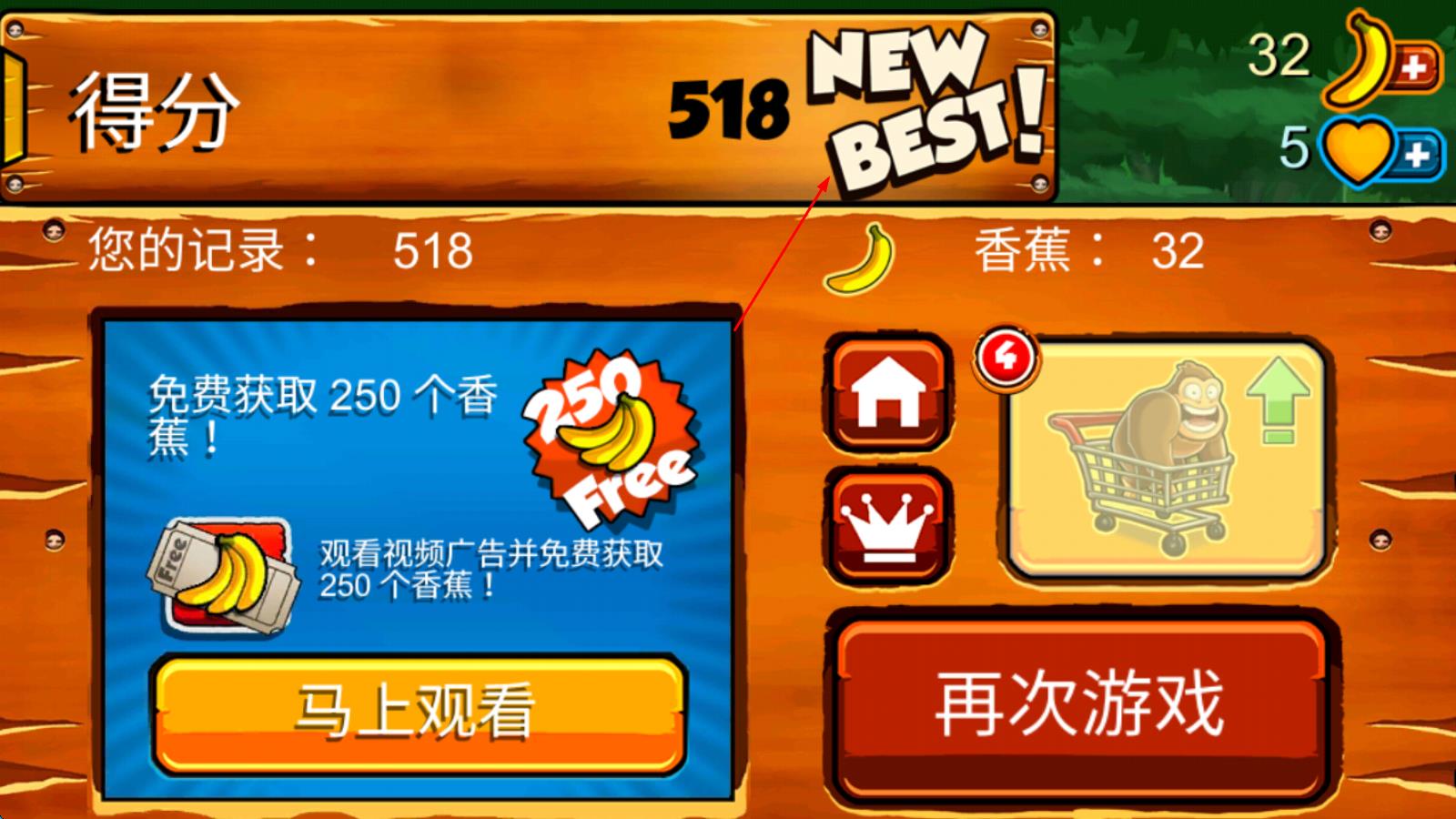 3、當在跑酷中持續(xù)收集香蕉、靈活使用道具避開所有障礙,成功突破當前關卡,即可解鎖新場景,用隱藏關卡獲得的裝飾裝扮小屋與金剛,開啟新挑戰(zhàn)。