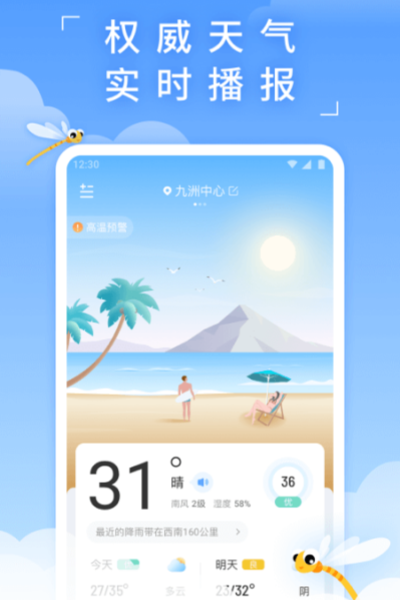 提供實(shí)時(shí)天氣以及天氣預(yù)報(bào),天氣預(yù)報(bào)24小時(shí)、新增地震預(yù)警 未來(lái)15天天氣預(yù)報(bào)。實(shí)時(shí)溫度計(jì)算空氣質(zhì)量指數(shù)、溫度趨勢(shì)、pm2.5等全面天氣信息。提供穿衣、紫外線、舒適度等生活指數(shù)。幫助出差異地天氣變化不會(huì),簡(jiǎn)單快捷天氣預(yù)報(bào),為您開(kāi)啟每日彩云好天氣,幫您美好生活小助手!蜻蜓天氣新版本,使用了新的業(yè)界技術(shù)。不但充分照顧了老用戶的使用習(xí)慣,而且性能更加流暢,網(wǎng)絡(luò)速度更快捷,是一款資源消耗更小的天氣社交軟件。