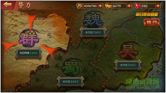 從主界面的菜單欄點擊勢力副本進入此模塊,勢力副本為四個國籍。根據每天開啟不同勢力副本。點擊今日開啟的國籍進入關卡界面。