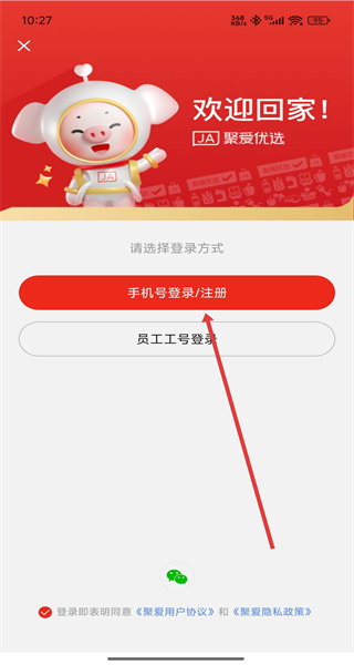 2、在選擇登錄方式頁(yè)面中,點(diǎn)擊選擇使用手機(jī)號(hào)進(jìn)行登錄。