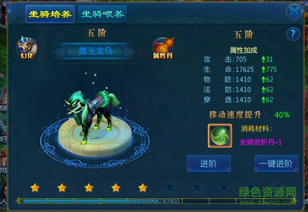 A、經(jīng)驗(yàn)條滿了之后,坐騎會(huì)提升一星;