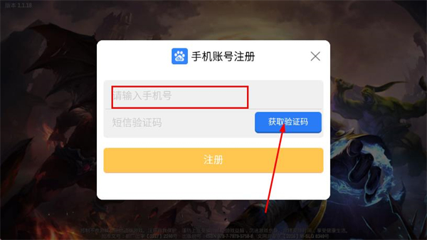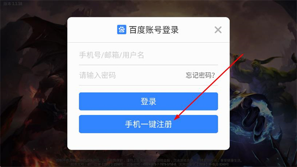 2、點擊手機(jī)一鍵注冊選項,進(jìn)入手機(jī)賬號注冊頁面。