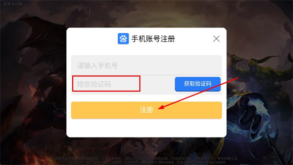 4、填寫收到的驗證碼,點擊注冊,即可完成賬號注冊。