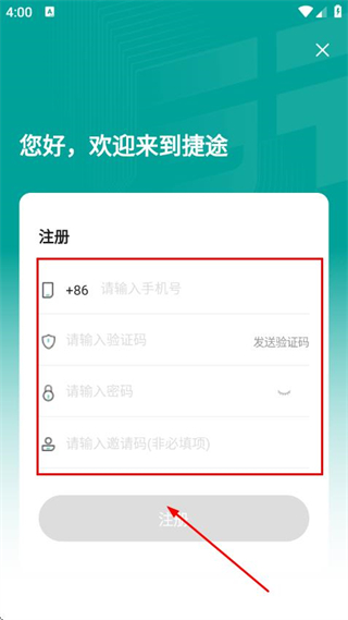 3、輸入手機號、驗證碼、密碼,完成賬號注冊。