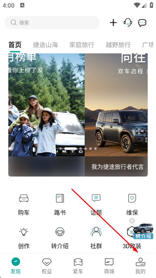 1、打開捷途汽車APP,點擊底部我的,進入個人頁面。
