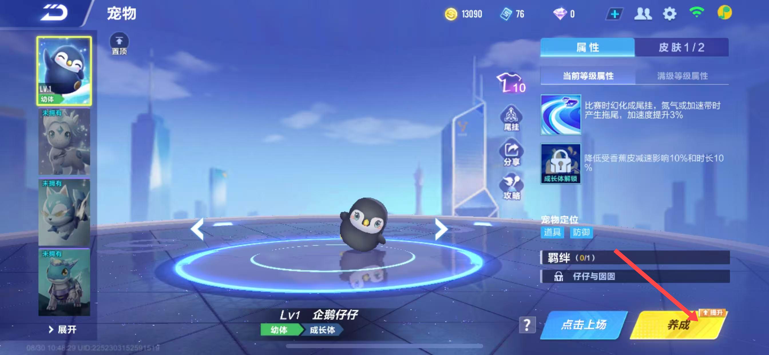 2、在寵物界面中,選擇你想要培養(yǎng)的寵物,點擊右下方的養(yǎng)成選項。