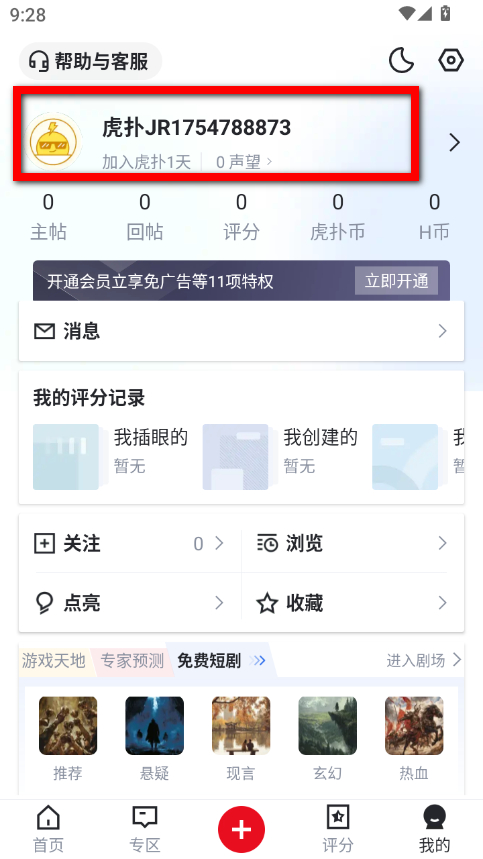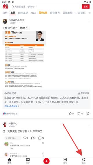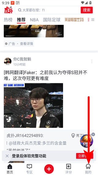 1、在虎撲首頁(yè),點(diǎn)擊右下角我的選項(xiàng),進(jìn)入個(gè)人界面。