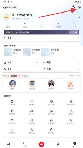 1、在虎撲首頁(yè),點(diǎn)擊右下角我的選項(xiàng),進(jìn)入個(gè)人中心頁(yè)面。