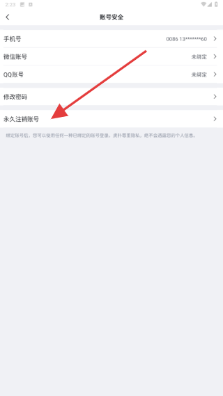 4、在賬號(hào)安全內(nèi),找到并點(diǎn)擊永久注銷(xiāo)賬號(hào)的按鈕。