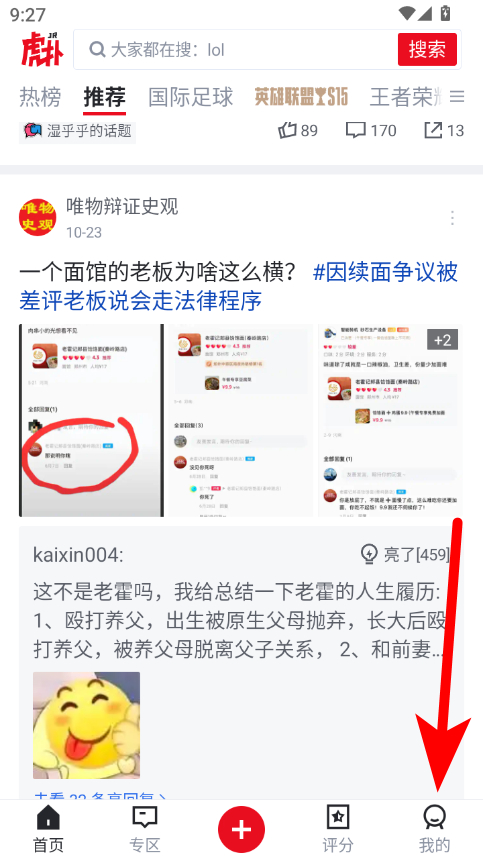 1、啟動(dòng)虎撲APP,進(jìn)入到首頁(yè)中,點(diǎn)擊導(dǎo)航欄中我的圖標(biāo)。