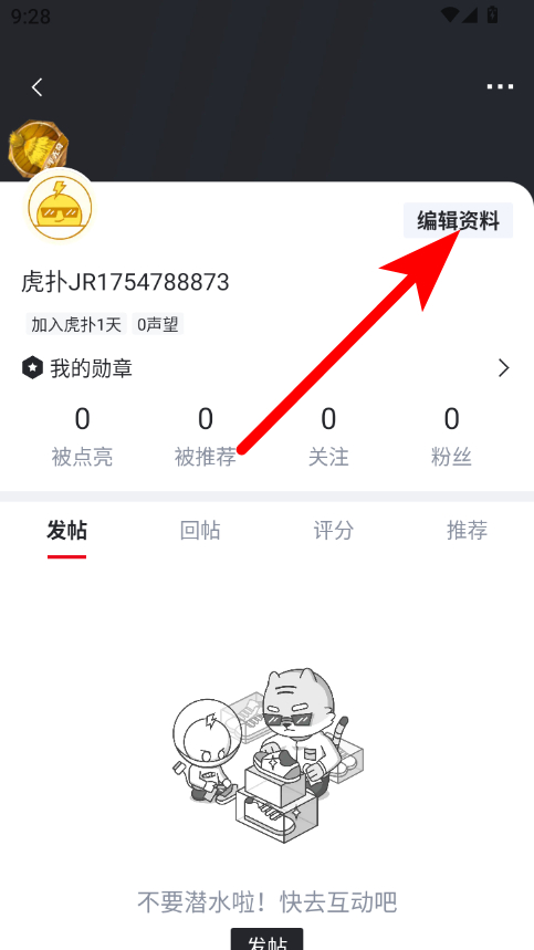 3、在個(gè)人資料頁(yè)面,點(diǎn)擊編輯資料選項(xiàng),進(jìn)入編輯界面。