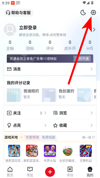 2、在個(gè)人中心頁(yè)面,點(diǎn)擊右上角設(shè)置圖標(biāo),進(jìn)入設(shè)置頁(yè)面。