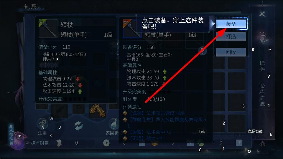 3、確認(rèn)裝備后點(diǎn)擊裝備按鈕,即可穿上這件裝備,提升角色實(shí)力。