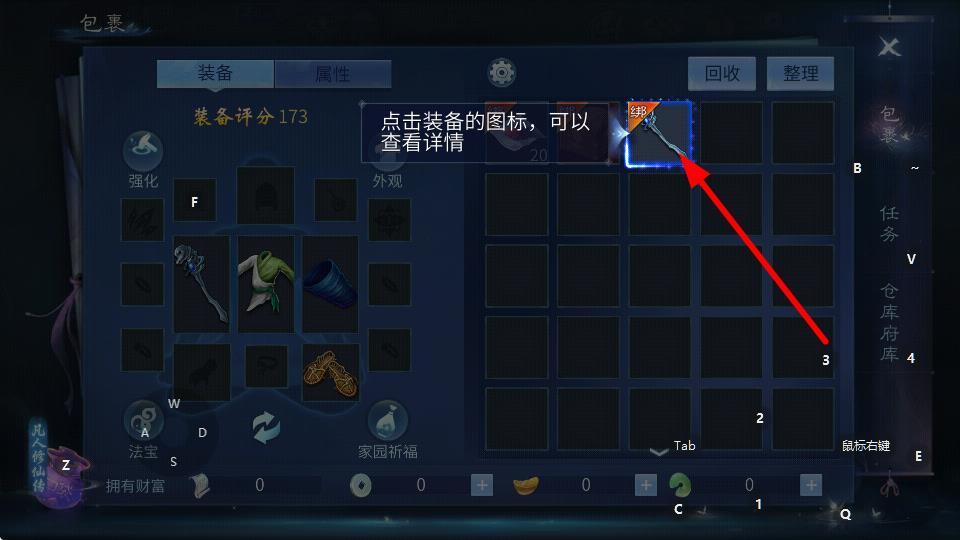 2、在包裹界面,點(diǎn)擊裝備圖標(biāo)可查看裝備詳情,了解屬性等信息。