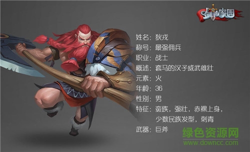 狄戎是具有傳奇色彩的人類史上最強(qiáng)傭兵,出生南方遺跡森林中的蠻族,力大無窮,可與棕熊對(duì)抗而不落下風(fēng),他喜愛揮舞著巨大的星巖石斧,將敵人全部砸成肉泥。在末世審判之役中為掩護(hù)同伴撤回法師塔而以一敵萬,最后隕落。