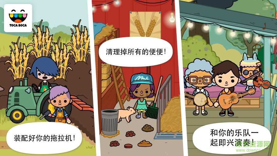 模仿農(nóng)民工作嬉戲!可以給奶牛擠奶、去雞窩收雞蛋,還能種植莊稼。拉拉小堤琴,躺到干草堆里睡上一覺!從日出到日落,Toca Life: Farm 為您帶來只屬于農(nóng)場的快樂!
