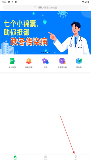 1、打開安全教育平臺app,進(jìn)入時點(diǎn)擊右下方我的按鈕。