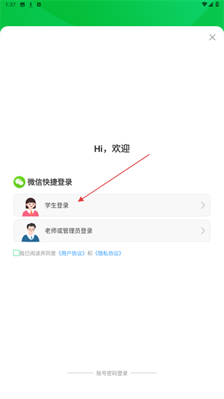 2、進(jìn)入快捷登錄的頁面內(nèi),點(diǎn)擊學(xué)生登錄的按鈕。