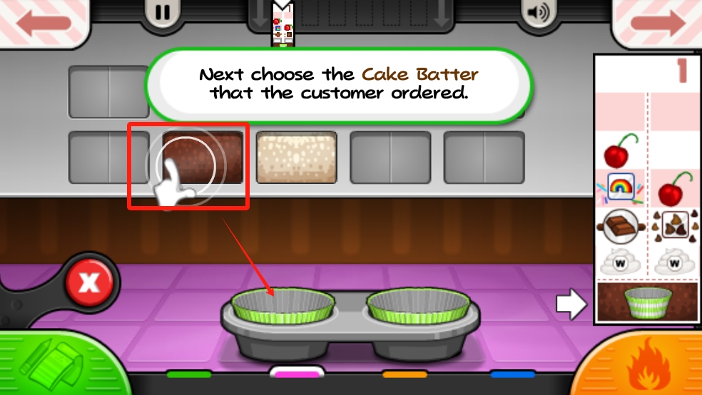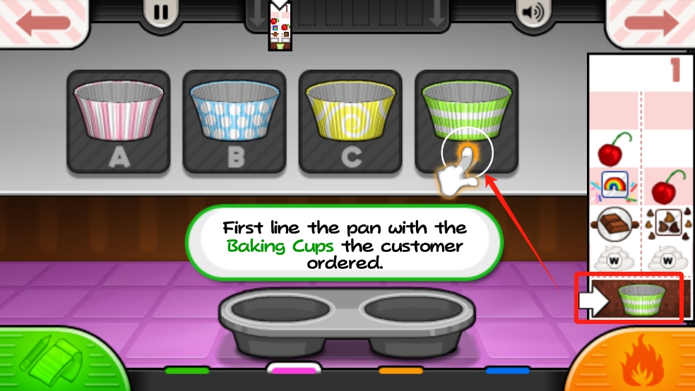 1、根據(jù)顧客的需要選擇相應(yīng)的蛋糕紙杯,點(diǎn)擊相應(yīng)的紙杯顏色自動(dòng)放入蛋糕磨具中;