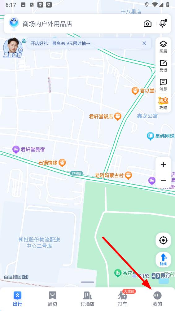 1、打開百度地圖應(yīng)用,點擊底部我的選項進入個人界面,在眾多功能板塊里,找到并點擊語音包圖標(biāo),準(zhǔn)備進行語音包相關(guān)操作。