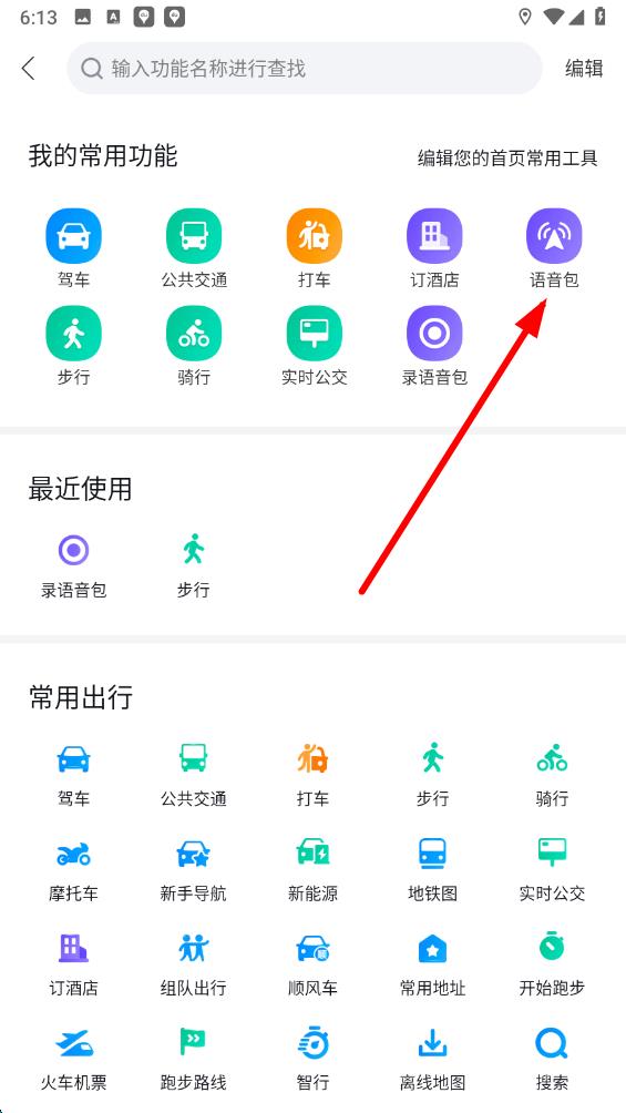2、進入更多功能頁面后,于我的常用功能區(qū)域中,再次點擊語音包按鈕,進入語音包選擇界面。
