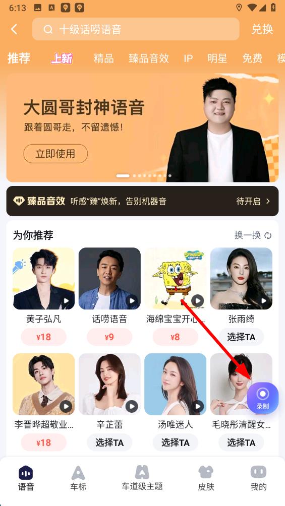 3、在語音包選擇界面里,點擊右下角的錄制按鈕,進入錄制語音包的流程。