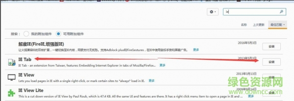 4.然后在搜索結(jié)果中會看到“IE Tab”組件,點擊右側(cè)的“安裝”按鈕。