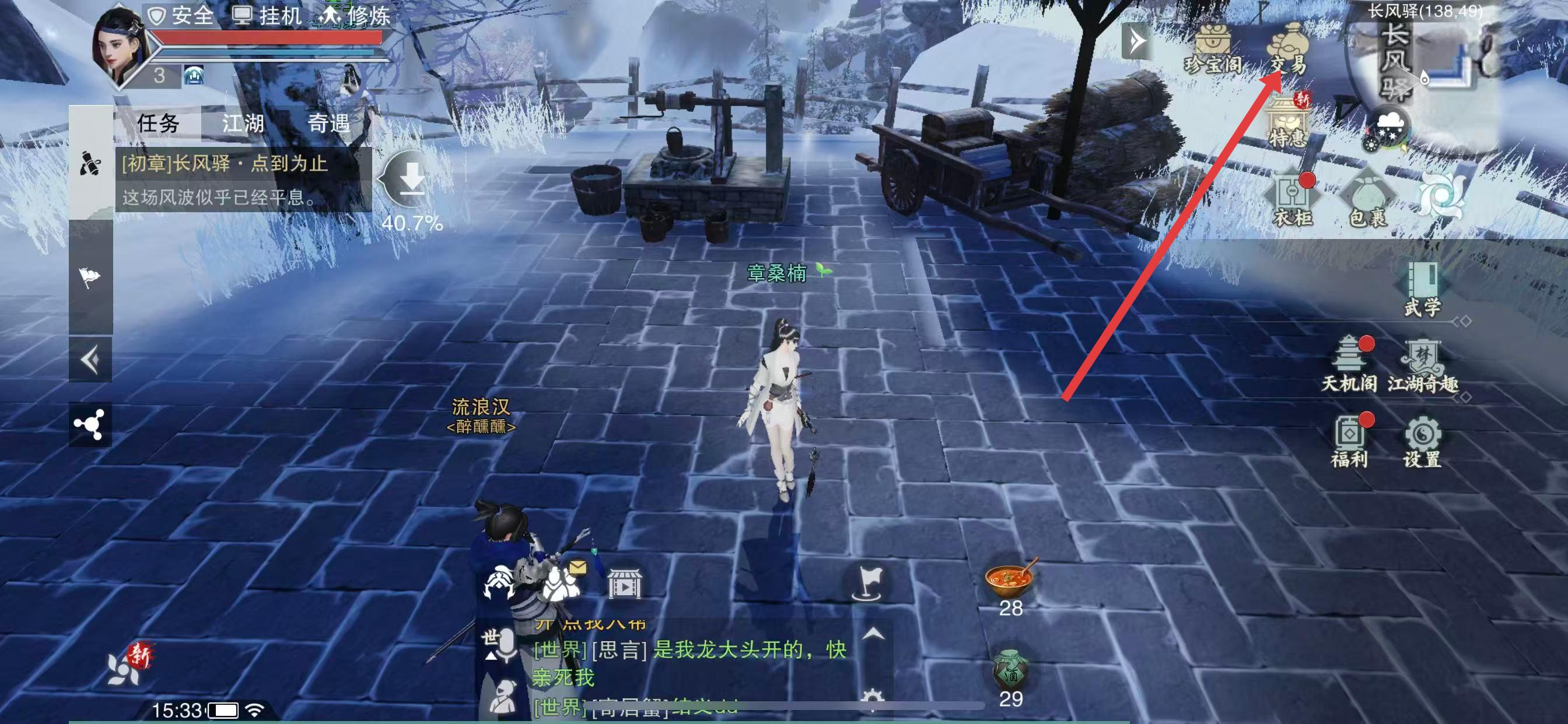 1、進(jìn)入游戲主界面,點(diǎn)擊右上角的交易圖標(biāo)。