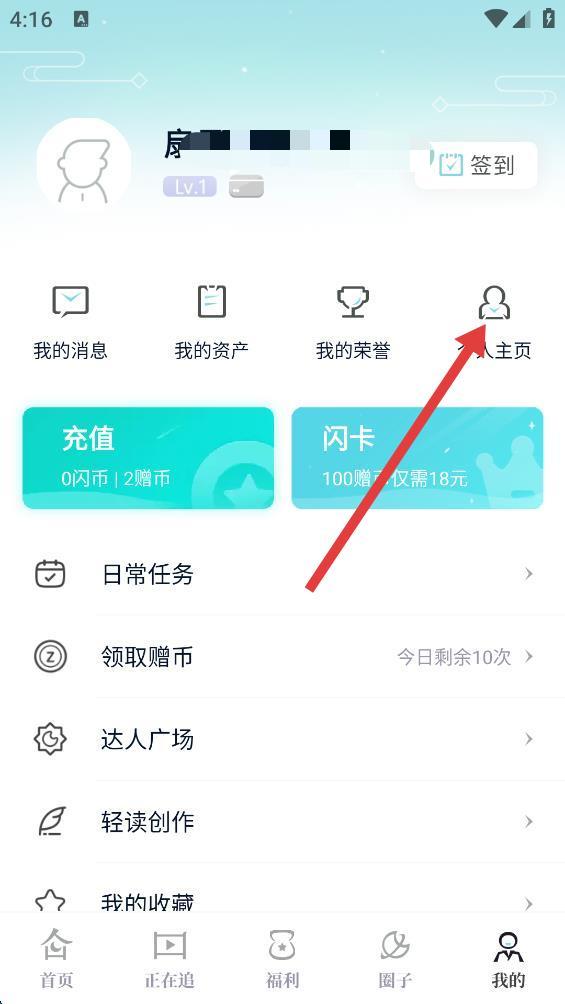 1、在個(gè)人頁(yè)面點(diǎn)擊上方的,個(gè)人主頁(yè)選項(xiàng)。
