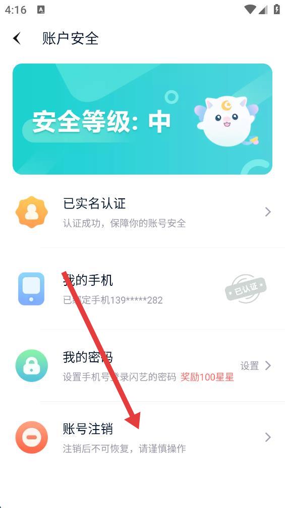 4、在賬戶安全頁(yè)面,點(diǎn)擊賬號(hào)注銷選項(xiàng)。