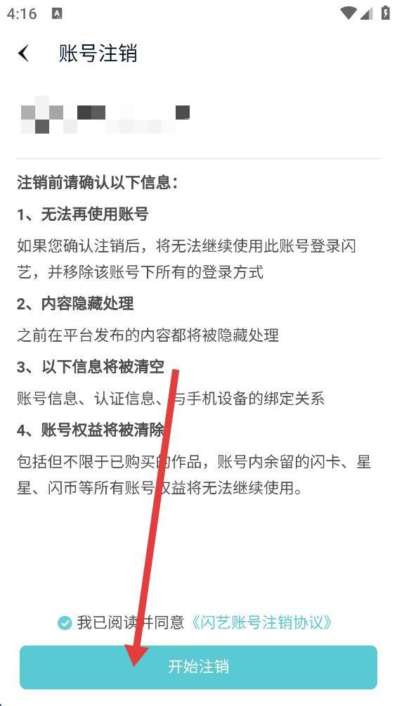 5、仔細(xì)閱讀相關(guān)信息,點(diǎn)擊開始注銷,即可完成賬號(hào)注銷操作。