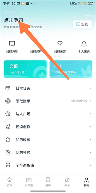 2、在個(gè)人中心界面,點(diǎn)擊點(diǎn)擊登錄選項(xiàng),進(jìn)入登錄選擇頁(yè)面。