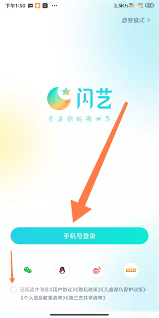 3、在登錄選擇頁(yè)面,點(diǎn)擊手機(jī)號(hào)登錄選項(xiàng)并勾選同意協(xié)議,進(jìn)入手機(jī)號(hào)登錄信息填寫界面。
