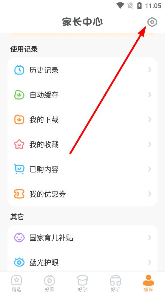 2、在家長中心頁面,點(diǎn)擊右上角的設(shè)置圖標(biāo)。