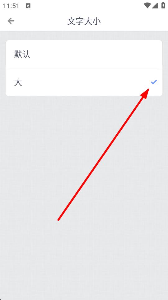 3、在文字大小設置頁面中,選擇默認或大等預設選項。